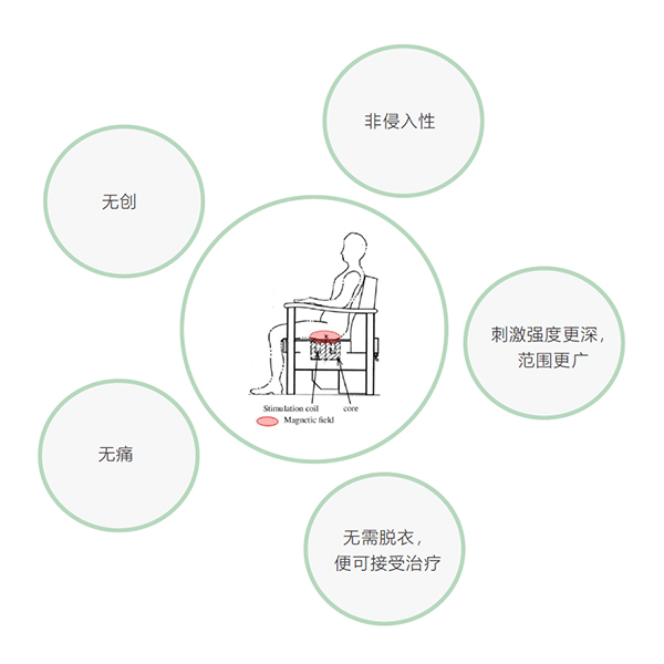 盆底磁刺激技術,通過運動磁場的感應電壓產(chǎn)生電流的刺激作用,刺激并激活盆底神經(jīng)產(chǎn)生神經(jīng)沖動,促進盆底血液循環(huán),引起肌肉收縮,增強盆底肌肉的活性和力量,從而治療盆底功能障礙性疾病。與電刺激相比,無創(chuàng),無痛,更深更廣,更安全。